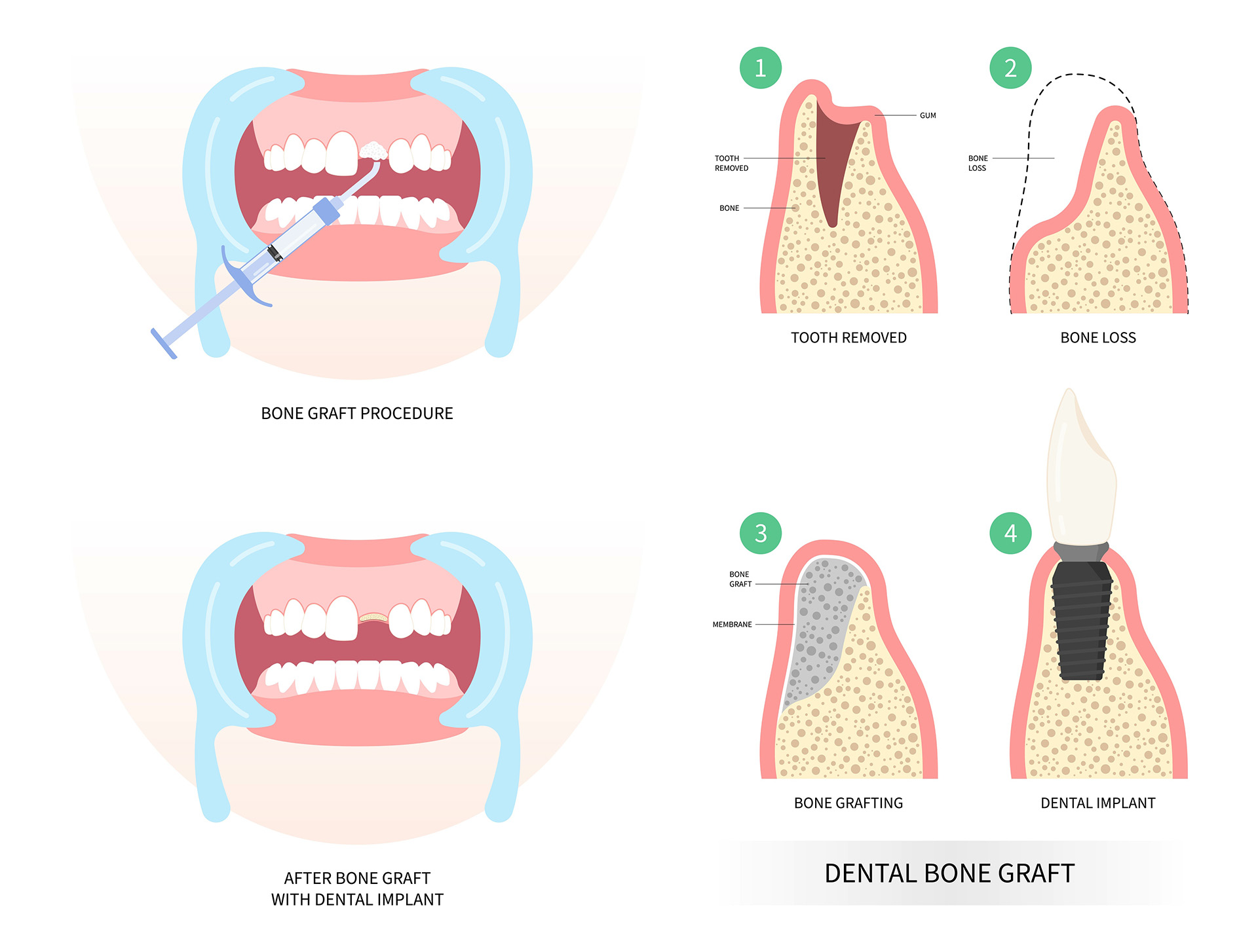For a dental implant to be successful, it must have bone around it to fuse too. The bone in your top and bottom jaw help hold onto your natural teeth. When you lose a tooth or multiple teeth, that bone begins to resorb. Bone grafting procedures help prevent or build bone to maximize long term success of the implant.